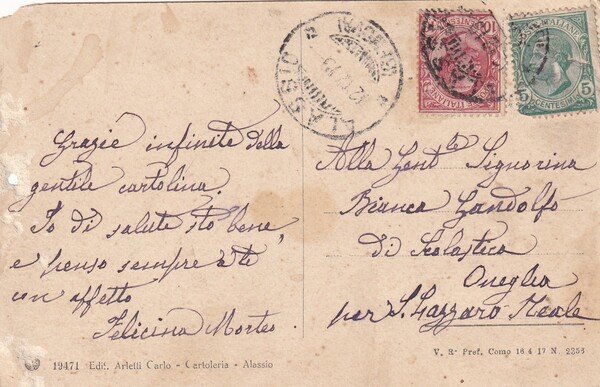 Cartolina Alassio (Savona) - Grand Hotel. 1919