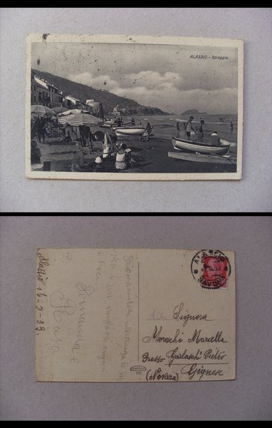 Cartolina ALASSIO (Savona) Spiaggia 1933