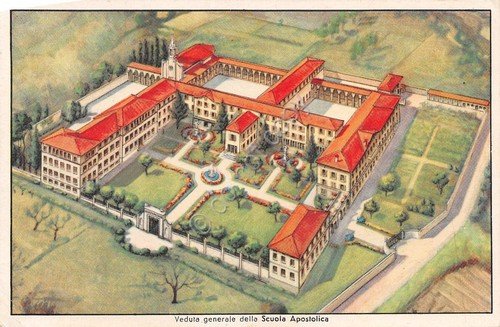 Cartolina Albino Bergamo scuola apostolica veduta generale illustrata pubblicit