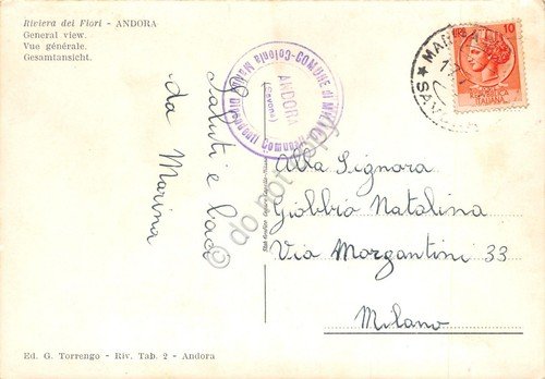 Cartolina Andora panorama dall'alto timbro Colonia Marina Dipendenti Comunali | Cartoline |