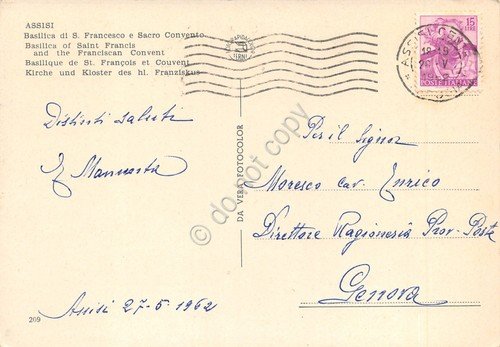 Cartolina Assisi Basilica S. Francesco Sacro Convento da strada animata auto 196 | Cartoline |