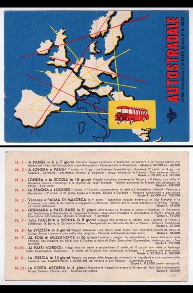 Cartolina AUTOSTRADALE - Milano (trasporti - pullman - corriere) Con tratte e prezzi.