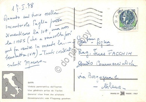 Cartolina Bari Panorama aereo 1978