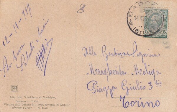 Cartolina Bassano (Vicenza) - vallata del Brenta. 1917