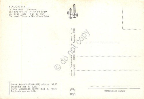 Cartolina Bologna le due torri Notturno | Cartoline |