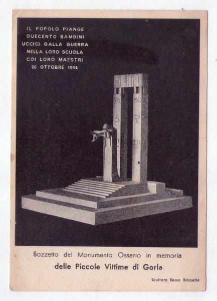 Cartolina Bozzetto del Monumento Ossario in memoria delle Piccole Vittime di Gorla. 1944