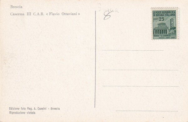 Cartolina Brescia - caserma III C.A.R. "Flavio Ottaviani".