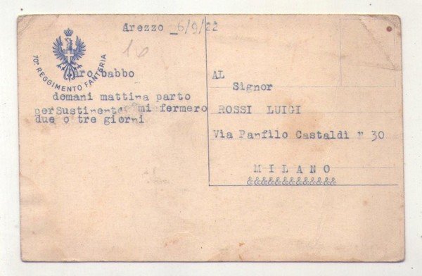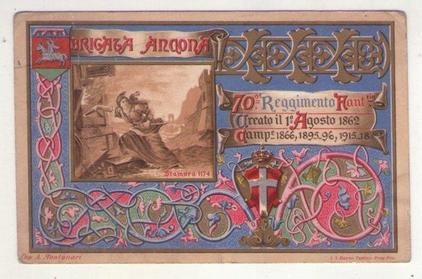 Cartolina Brigata Ancona - 70° Reggimento Fanteria. 1922