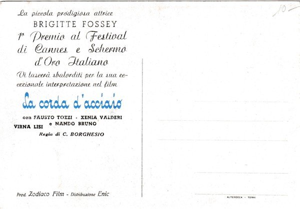 Cartolina Brigitte Fossey nel film LA CORDA D'ACCIAIO di Carlo Borghesio.