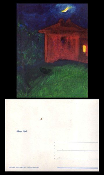 Cartolina BUONE FESTE con riproduzione di Maurizio Corona 1992. Galleria Toselli Milano.