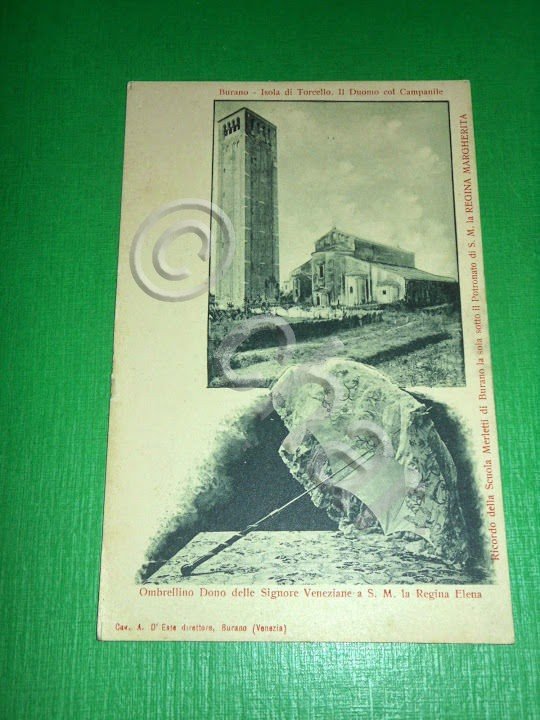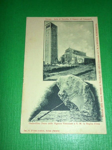 " *** Cartolina Burano - Isola di Forcello - Il Duomo - Ombrellino della Regina Elena, dono delle Signore Veneziane. La cartolina non è viaggiata. Databile 1900 ca. Formato piccolo. Per appassionati, studiosi e collezionisti