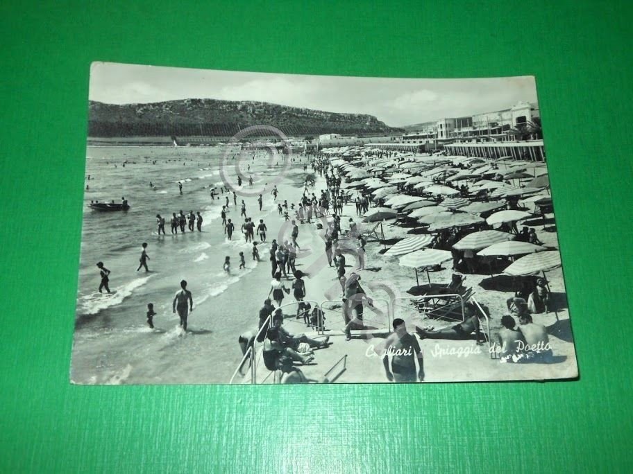 Cartolina Cagliari - Spiaggia del Poetto 1955 ca