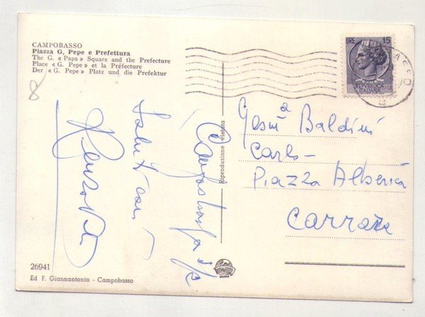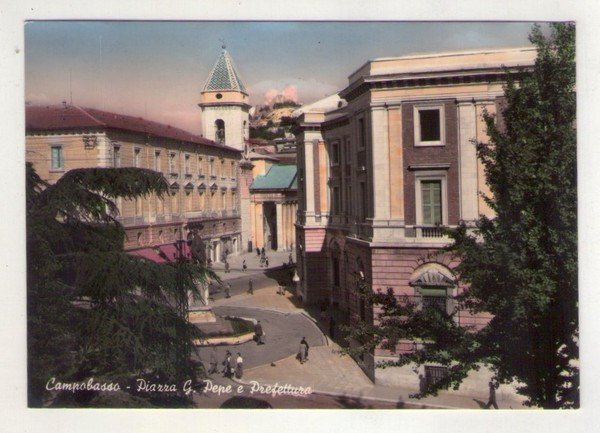 Cartolina Campobasso - Piazza G. Pepe e Prefettura. 1959