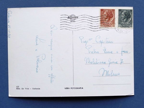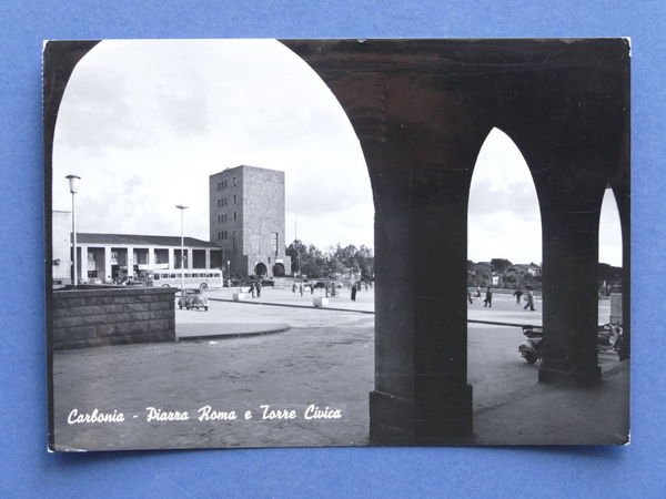 Cartolina Carbonia - Piazza Roma e Torre Civica - 1959 1959 Cartolina formato grande - viaggiata Condizioni buone, come da foto Per appassionati, studiosi e collezionisti