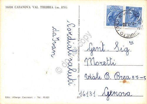 Cartolina Casanova Val Trebbia Rovegno vedute con neve 1980