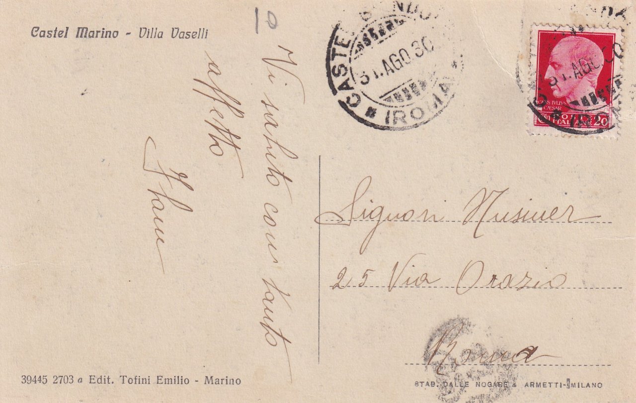 Cartolina Castel Marino (Grosseto) - Villa Vaselli. 1930