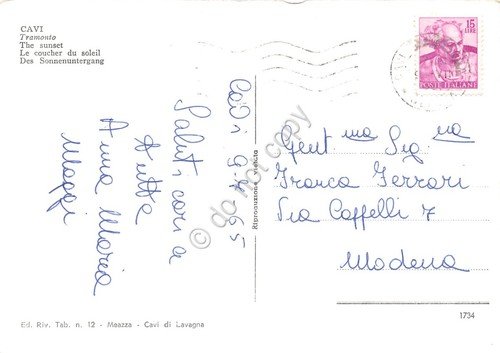 Cartolina Cavi di Lavagna al tramonto Zodiaco 1965 | Cartoline |