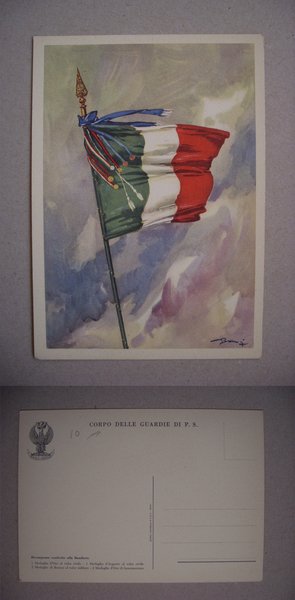 Cartolina Corpo delle Guardie di P.S. (Pubblica Sicurezza) Ricompense conferite alla bandiera.