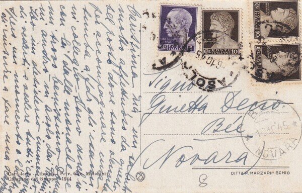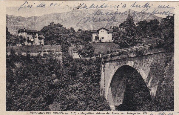 Cartolina Crespano del Grappa (Treviso) - Magnifica visione del Ponte sull'Astego. 1945