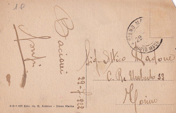 Cartolina DIANO MARINA (Imperia) - Spiaggia. 1922