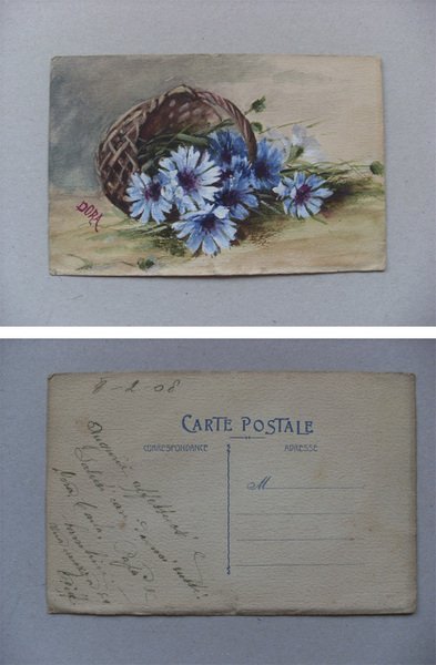 Cartolina dipinta a mano (cestino di fiori) ill.DORA