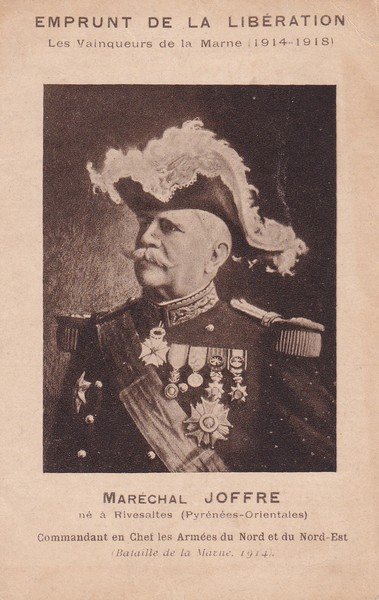 Cartolina Emprunt de la liberation - Marechal Joffre. Bataille de la Marne 1914