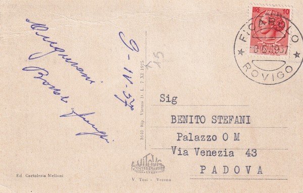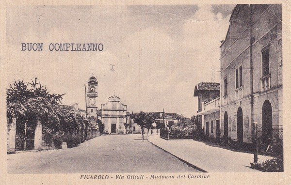 Cartolina Ficarolo (Rovigo) - Via Gilioli - Madonna del Carmine. 1925