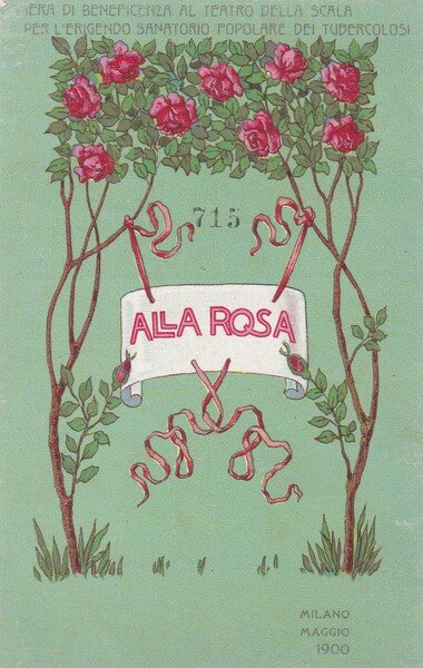 Cartolina Fiera di beneficenza al teatro della Scala per l'erigendo sanatorio popolare dei tubercolosi. 1900