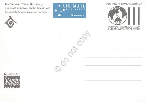Cartolina Filatelica Australia Year of the family Beach at Cowes 1994