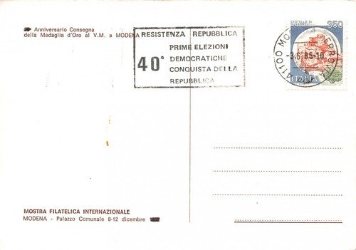 Cartolina filatelica Mostra Filatelica Internazionale Modena 1986