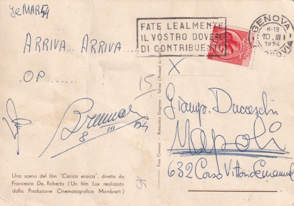 Cartolina film "Carica eroica" diretto da Francesco De Robertis (Lux). 1954