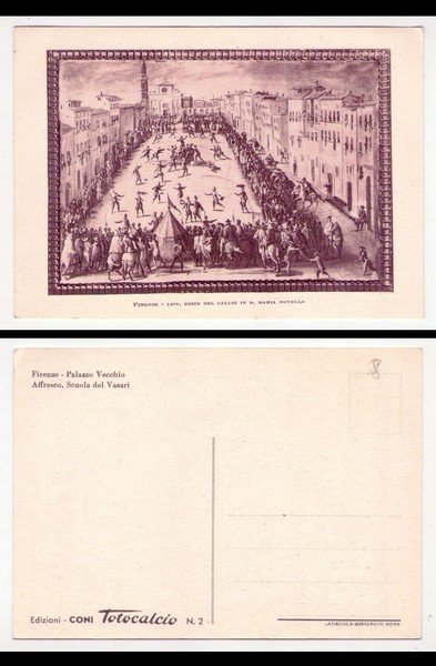 Cartolina Firenze - Palazzo Vecchio. Affresco, Scuola del Vasari. Edizioni CONI Totocalcio. N.2