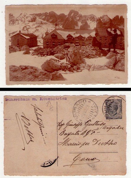 Cartolina fotografica SCHIERNHAUS m. Rosengarten (Rifugio Bolzano - Dolomiti) 1923