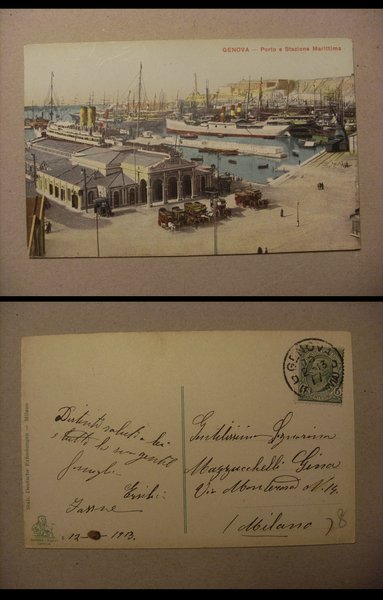Cartolina GENOVA - Porto e Stazione Marittima 1913