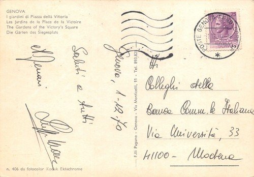 Cartolina Genova Giardini di Piazza Vittoria 1970