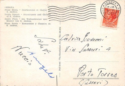 Cartolina Genova Piazza Dante Grattacieli Chiostro S. Andrea 1957