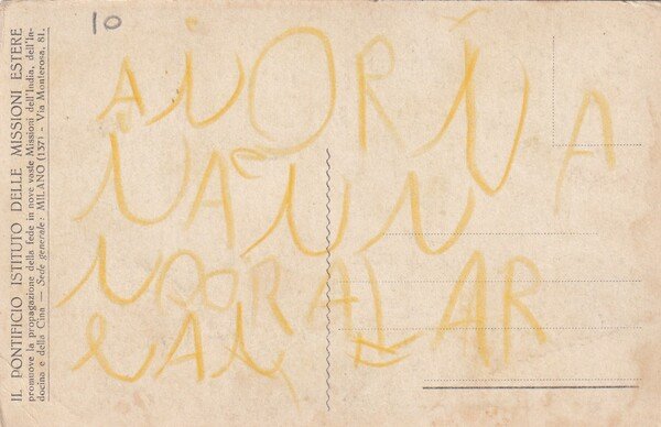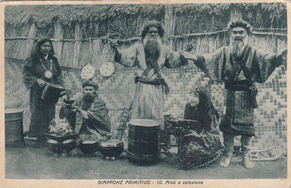 Cartolina Giappone primitivo - 10. Ainù a colazione. Il Pontificio Istituto delle Missioni Estere.
