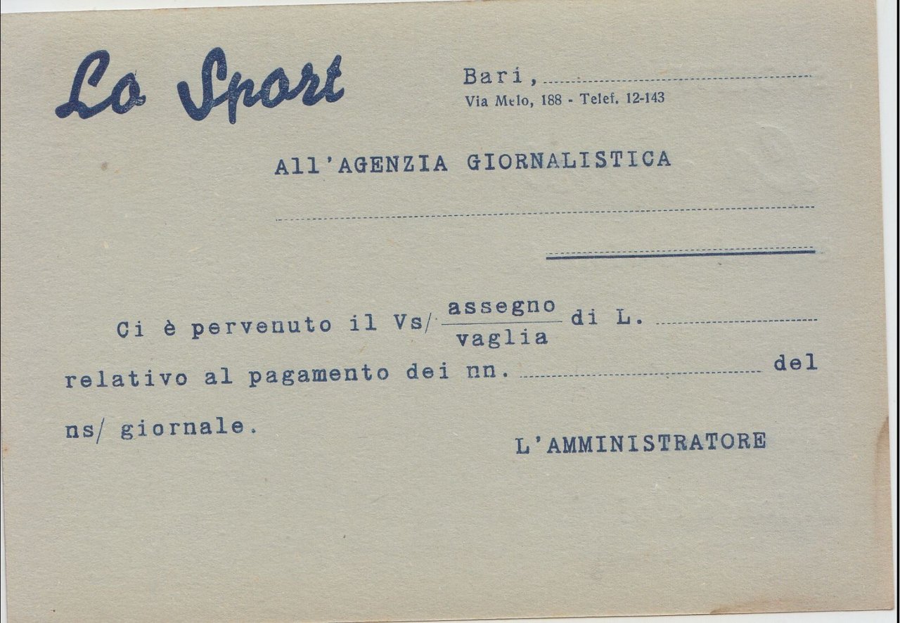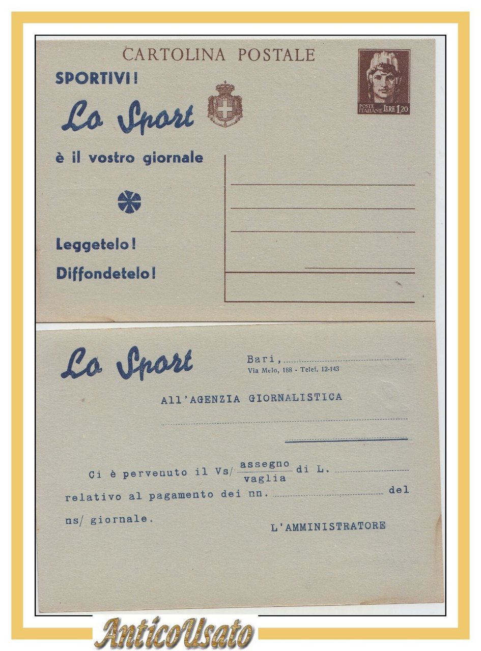 CARTOLINA Giornale LO SPORT di Bari postale pubblicitaria lire 1,20 Turrita 1945
