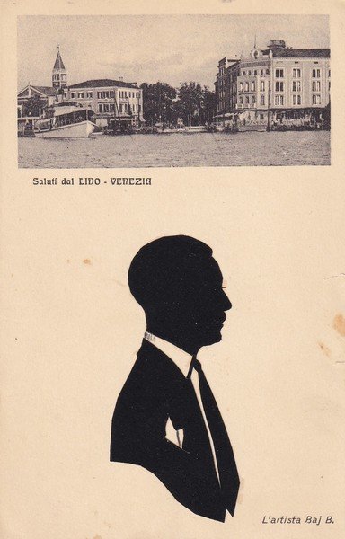 Cartolina (Grande Stabilimento Bagni) Saluti dal LIDO - VENEZIA (con sagoma)