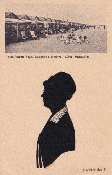 Cartolina (Grande Stabilimento Bagni) Stabilimento Bagni. Capanne di sinistra. LIDO - VENEZIA