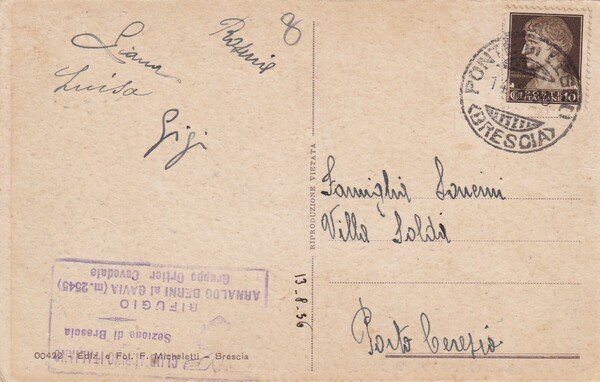 Cartolina Gruppo Ortler - Cevedale - Rifugio "Arnaldo Berni" al Passo di Gavia.