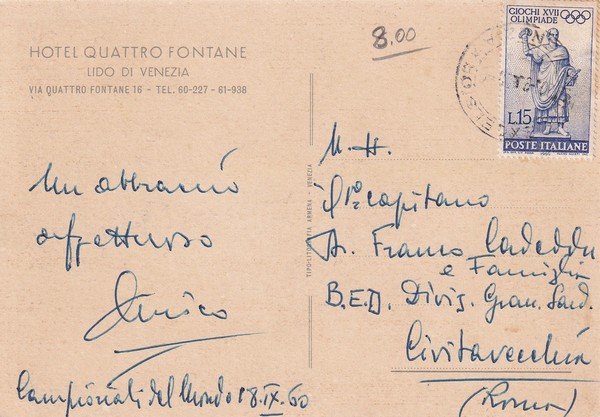 Cartolina Hote Quattro Fontane - Lido di Venezia.