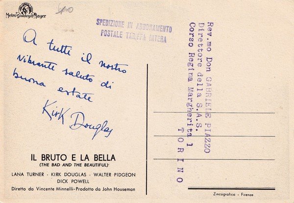 Cartolina IL BRUTO E LA BELLA (Lana Turner, Kirk Douglas, Walter Pidgeon, Dick Powell)