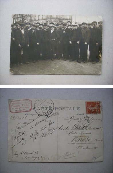 Cartolina immigrati Italiani a Parigi spedita a Varese. 1916