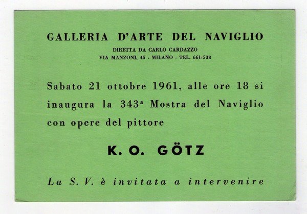 Cartolina / invito Mostra Karl Otto Götz. Galleria d´Arte del Naviglio di Carlo Cardazzo - Milano 1961