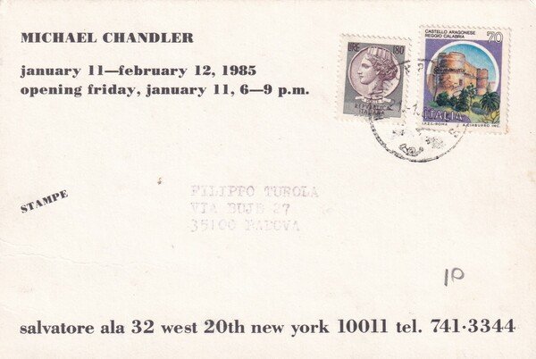 Cartolina invito mostra MICHAEL CHANDLER. Salvatore ala 32 - New York 1958