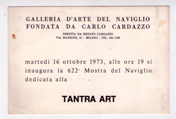 Cartolina/invito Mostra TANTRA ART. Galleria d´Arte del Naviglio di Carlo Cardazzo - Milano 1973