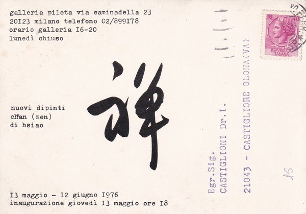 Cartolina/Invito Nuovi dipinti CHAN (Zen) di HSIAO - Galleria Pilota Milano. 13 maggio - 12 giugno 1976