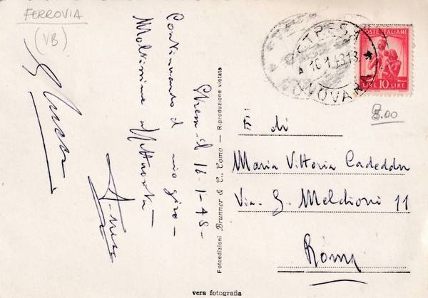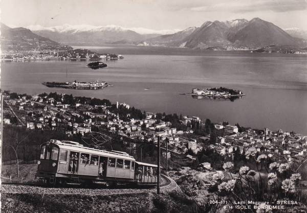 Cartolina Lago Maggiore - Stresa e le Isole Borromee. 1948 (ferrovia - treno)