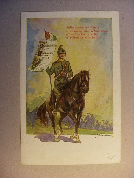 Cartolina Lanciere con Foglio di Congedo. ill.Didone